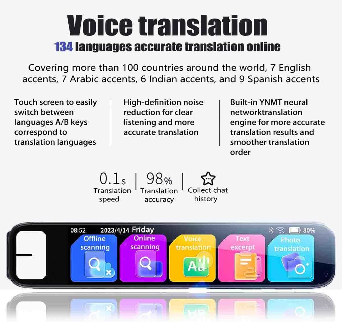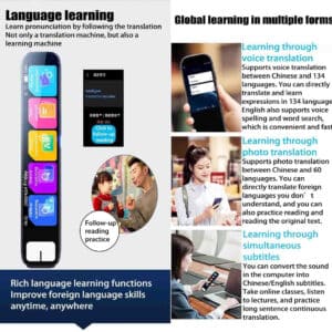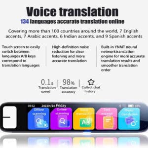 Enjoy an intuitive interface on the HD touchscreen display. Record lectures, meetings, or personal notes using the integrated voice recorder, ensuring you never miss important details. Combine text scanning, translation, and voice notes for a truly versatile learning experience.