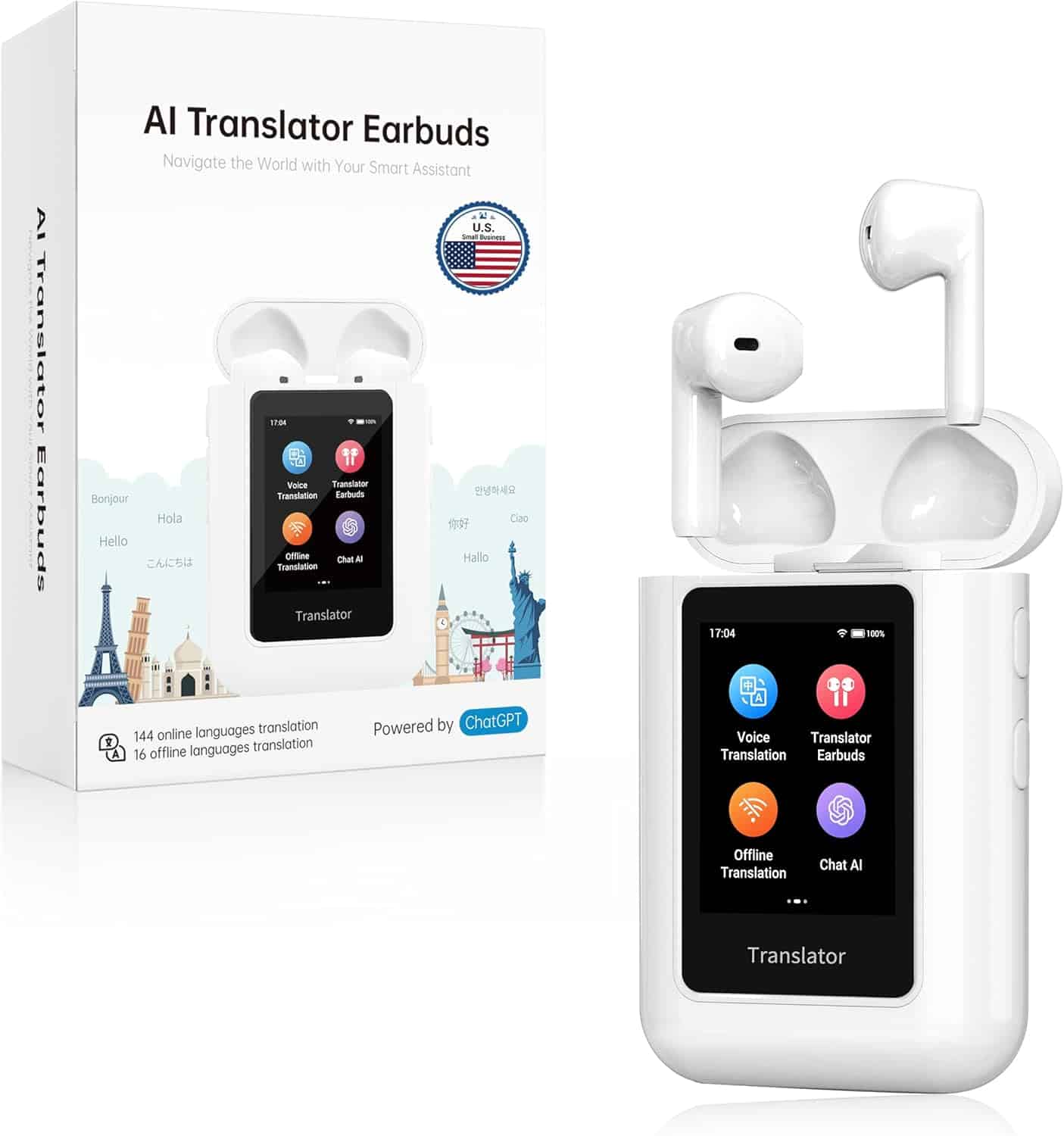 I am an actual buyer and not a paid reviewer. I was looking for translator earbuds that would assist me with my non English speaking client. I do have access to telephone translation services but wanted our first meeting to be friendly and relaxed. I ordered 2 different types of translator earbuds, this pair and the Z50S Pro Max. I ordered these earbuds bc I didn’t have to download a program to my phone and pay a subscription fee. My phone was not tied up for translation but could be used for other needs. Its a standalone translation device! The translator screen can be used without the earbuds and will detect your voice. You do need to select what language is being spoke and what language you want to convert it too. Like speak English and it converts to Spanish without the earbuds. I find this to be very useful for traveling. You can speak in English and it will translate it to your desired language right from the translator box to the other person, who can then answer you in their language and it will translate to you. There is very little delay translation time– its pretty quick. You do need to select on the side of the translator A or B. If you want to use the earbuds for a more quiet conversation then that is available. The earbuds connect very easily on initial setup and when you remove them from the translator they will activate and tell you that they are on. The screen will show your battery percentage of each earbud. This translator has 16 languages off line so no internet connection required. They mainly are the most common languages like French, German, Spanish ( several dialects to choose from), Chinese, Korean, Arabic, Italian, Hindi, Japanese, etc.There is also a chatGPT feature ( you will probably need an internet connection) where you can ask questions like places of interest, etc.Some additional features that were important to me were: I am able to print and email my conversation to myself or anyone else if needed.The earbuds can be also used to connect to your phone to listen to music. The connection and charging are via a Type-C USB which you can also connect to your computer for video play, it says that you can also record the video file from the translator screen, but I haven’t tried it. The translator will also display 2 different time zones. I can’t tell you how long the earbuds last power wise yet bc I haven’t tested that yet. The earbuds are similar to the white style and the comfort is about the same. There was a decent instruction manual that came with the earbuds.I have only unwrapped the Z50 Pro Max and plugged them in for charging. You have to download an app and there are very little instructions with them. I’ll review them under the product once I test drive them, but so far I’m loving these A8 Translator earbuds!Both items are made in China.