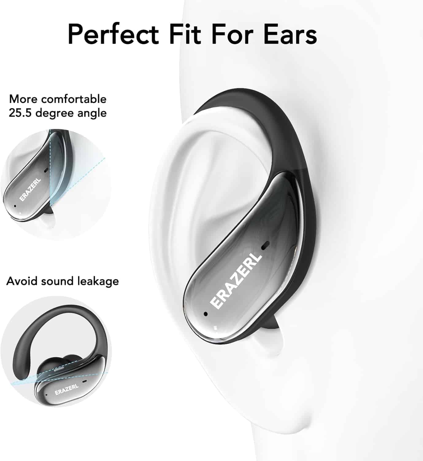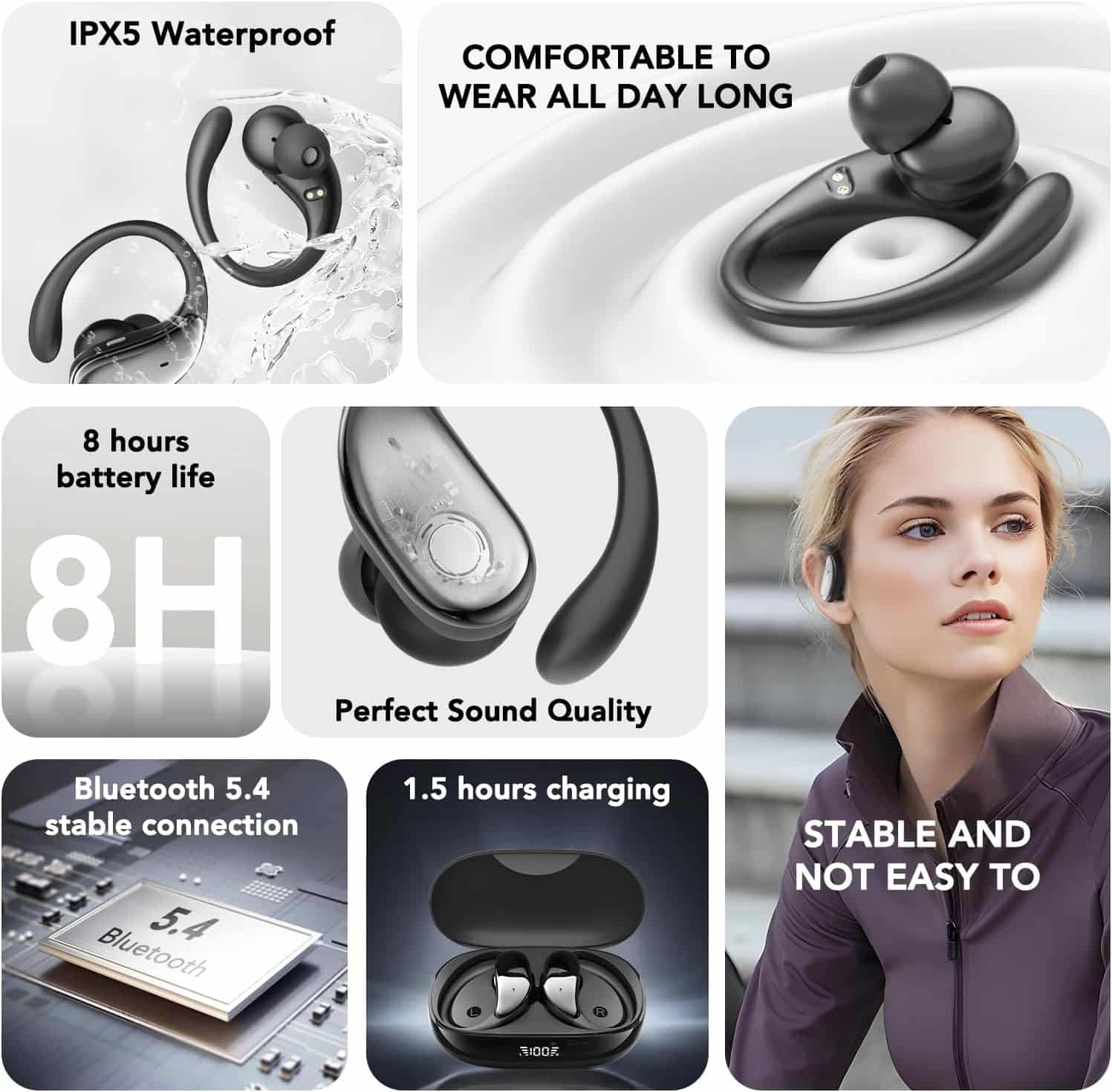 Crafted from lightweight PC material, each earbud weighs just 8g and is IPX5 water-resistant. Soft silicone earhooks ensure a secure and comfortable fit for sports, workouts, or daily use. The earbuds come with three ear tip sizes (S, M, L) for the perfect fit, allowing you to enjoy music while staying aware of your surroundings.