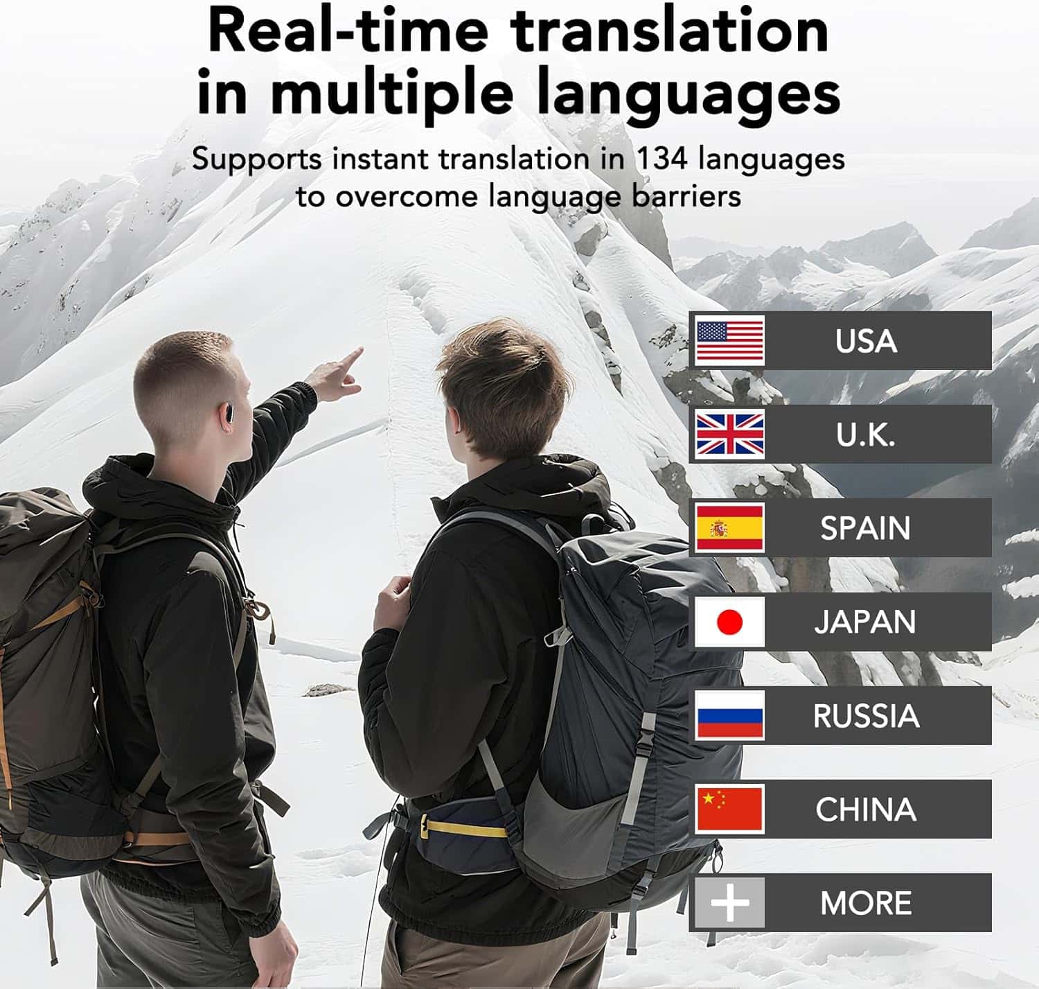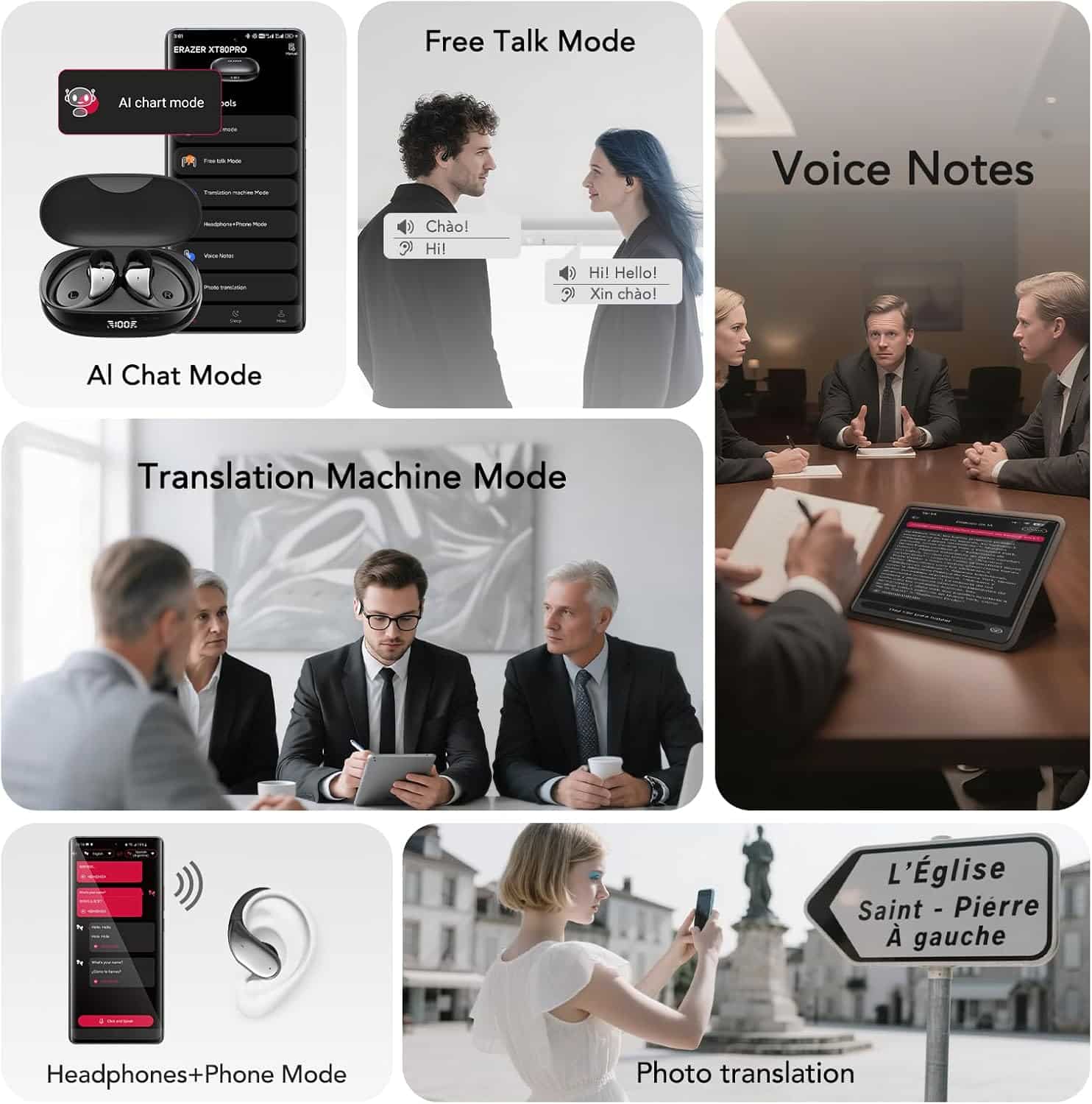 The ERAZERL XT80 translation headset uses advanced AI technology to translate 134 global languages in real time, covering everyday communication in 98% of countries and regions. Perfectly optimised for business, travel, and social scenarios, it intelligently recognises professional vocabulary during meetings and negotiations. Translation accuracy is up to 30% higher than comparable products (APP download required).