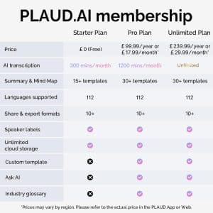 • 300 mins/month of complimentary AI transcription and summarisation services